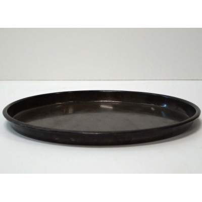 Large simple dish in iron and with a dark color. The dish is functional with its many application possibilities, such as displaying your favor kitchen specialties, on the dining table with pillar candles, flowers, vases and ornamental decoration.
